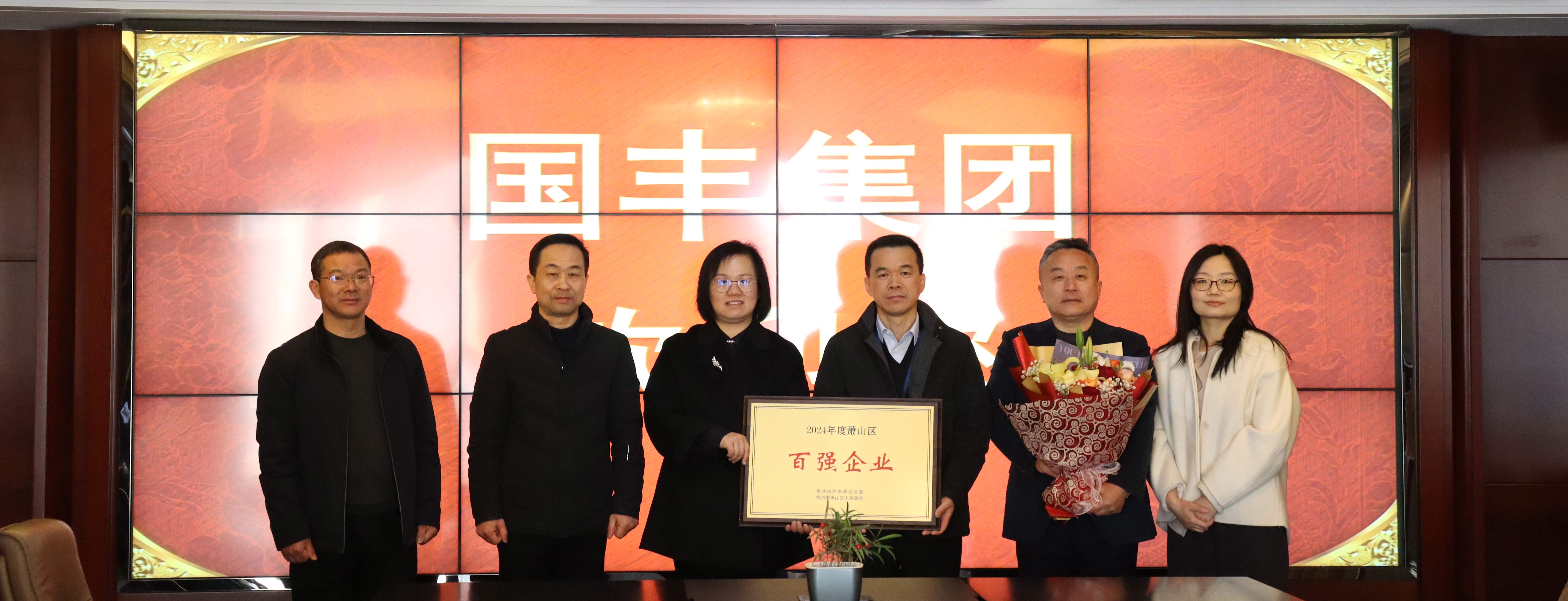 區(qū)住建局領(lǐng)導(dǎo)走訪國豐集團 頒發(fā)“蕭山區(qū)百強企業(yè)”獎牌